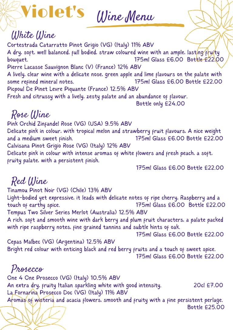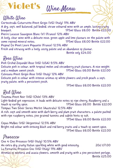 We also have a selection of Beers, Wines, Spirits and Cocktails available.